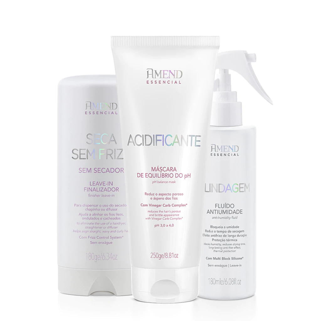 ou difusor, o Amend Essencial Seca Sem Frizz deixa as cutículas mais alinhadas