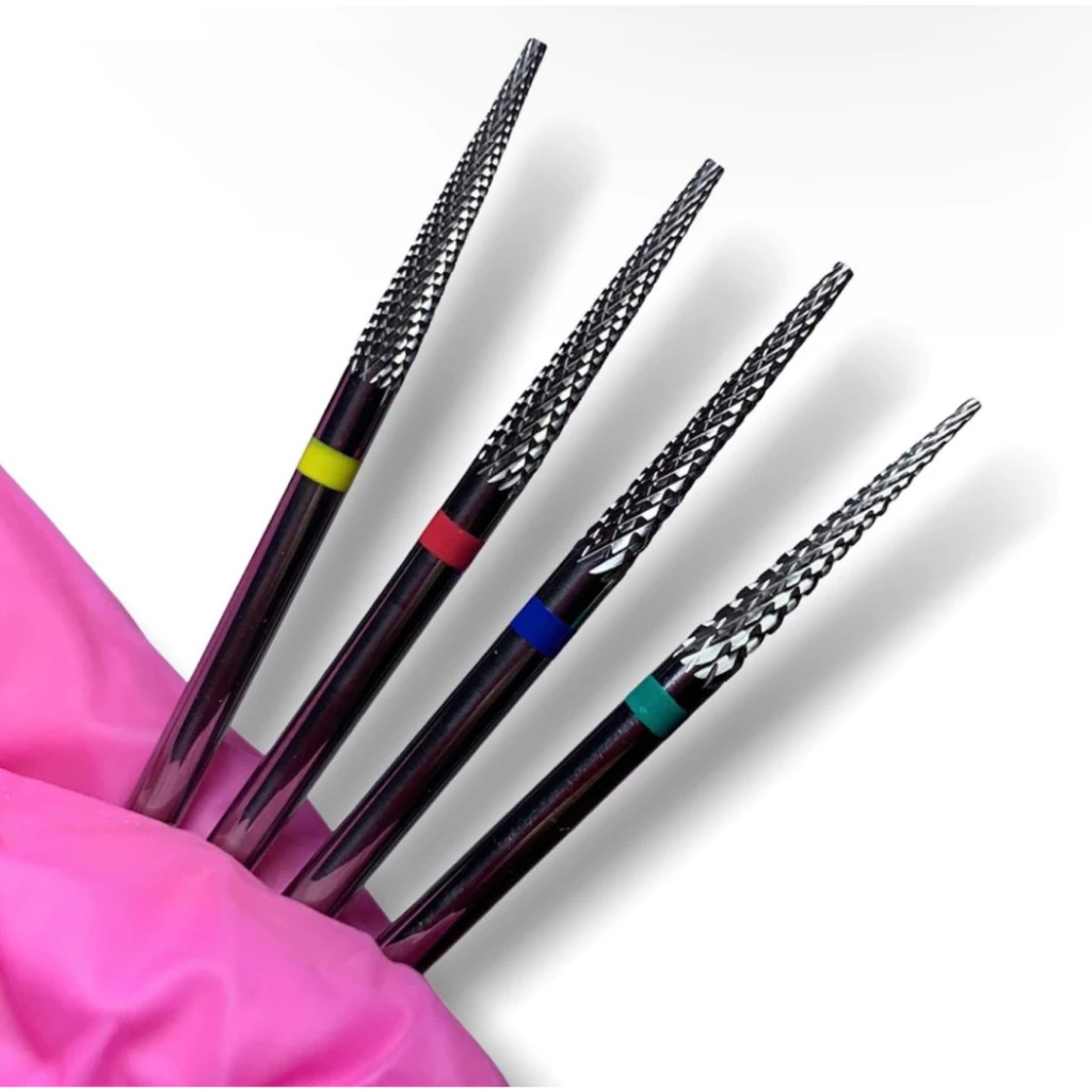 Broca de tungstênio ponta fina, ideal para acabamentos e limpeza por baixo do alongamento.