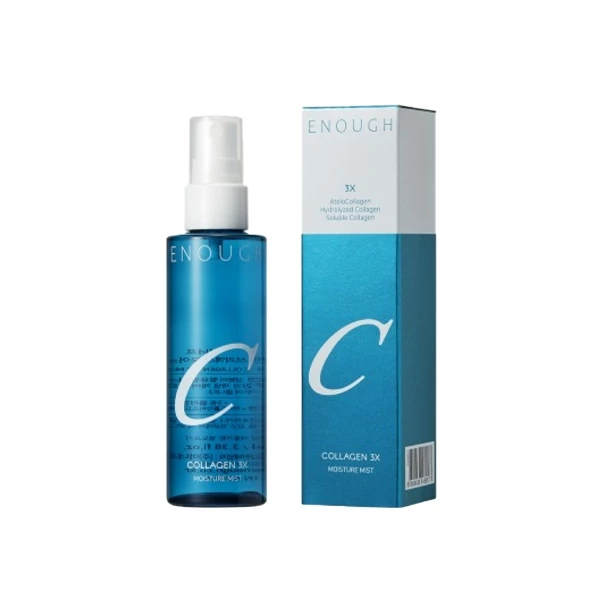 💛Enough Collagen 3X Moisture Essential Mist é uma poderosa e concentrada essência tipo toner projetada para acalmar o estresse da pele e promover uma tez saudável e hidratada. Infundido com ingredientes de colágeno e hidratante, esta névoa refrescante revitaliza a pele, potencializando sua elasticidade e proporcionando uma hidratação profunda.