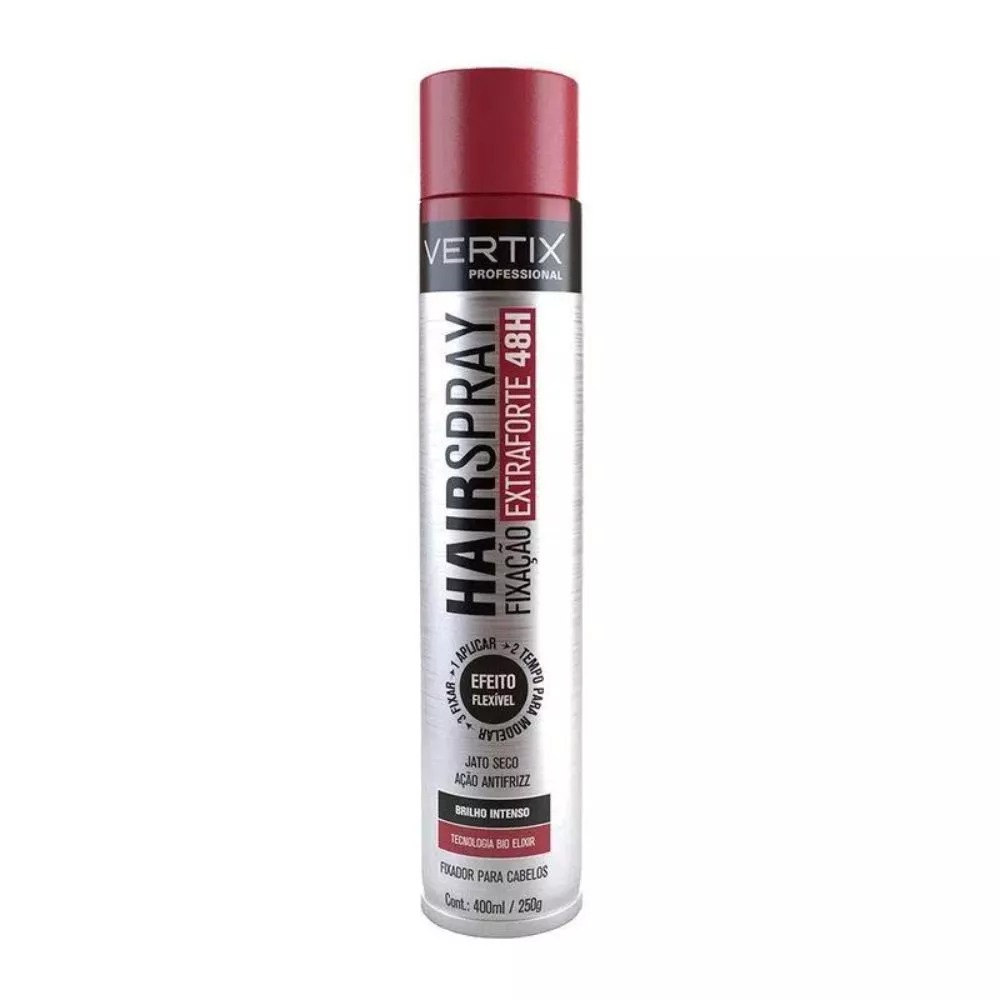 Vertix Hairspray Extraforte controla os fios indisciplinados e volumosos com seu jato seco ao mesmo tempo em que dá flexibilidade para que os fios sejam trabalhados durante o penteado com efeito memória, que conserva o estilo do cabelo por mais tempo.