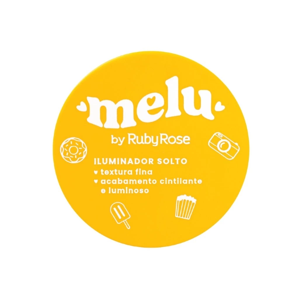 OIluminador Solto Melu Ruby Rosepossui partículas de brilho que garante um acabamento cintilante e luminoso para sua make! Indicado para todos os tons de pele.
