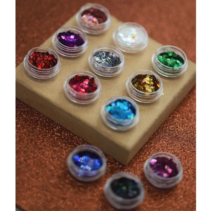 Kit 12 Glitter Holográfica Formato Coração Para Decoração De Unhas Nail ART