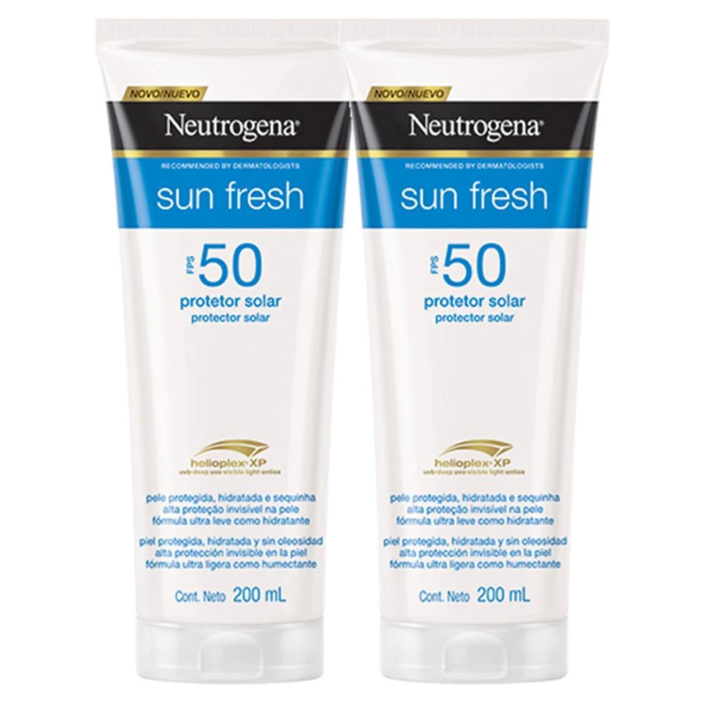O Protetor Solar Neutrogena Sun Fresh FPS 50 possui uma fórmula não oleosa e com alto poder de absorção, devido à tecnologia Helioplex que proporciona uma solução altamente eficaz e uma proteção ampla e imediata contra os raios UVA/UVB, garantindo uma pele protegida, intensamente hidratada, seca e fresquinha. Além disso, Neutrogena Sun Fresh é indicado para todos os tipos de pele, inclusive as mais sensíveis ao sol, ajudando a prevenir contra o envelhecimento precoce e as manchas causadas pelo sol. Recomendado por dermatologistas.