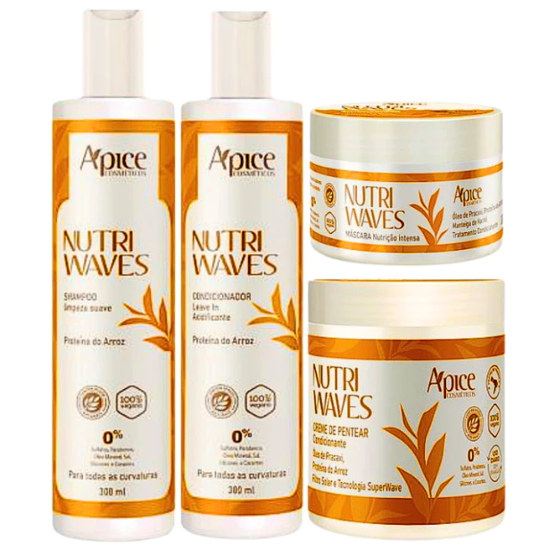 Apse Nutri Waves – Kit de 4 Itens (Shampoo + Condicionador + Gelatina + Gelatina + Creme de Pentear)