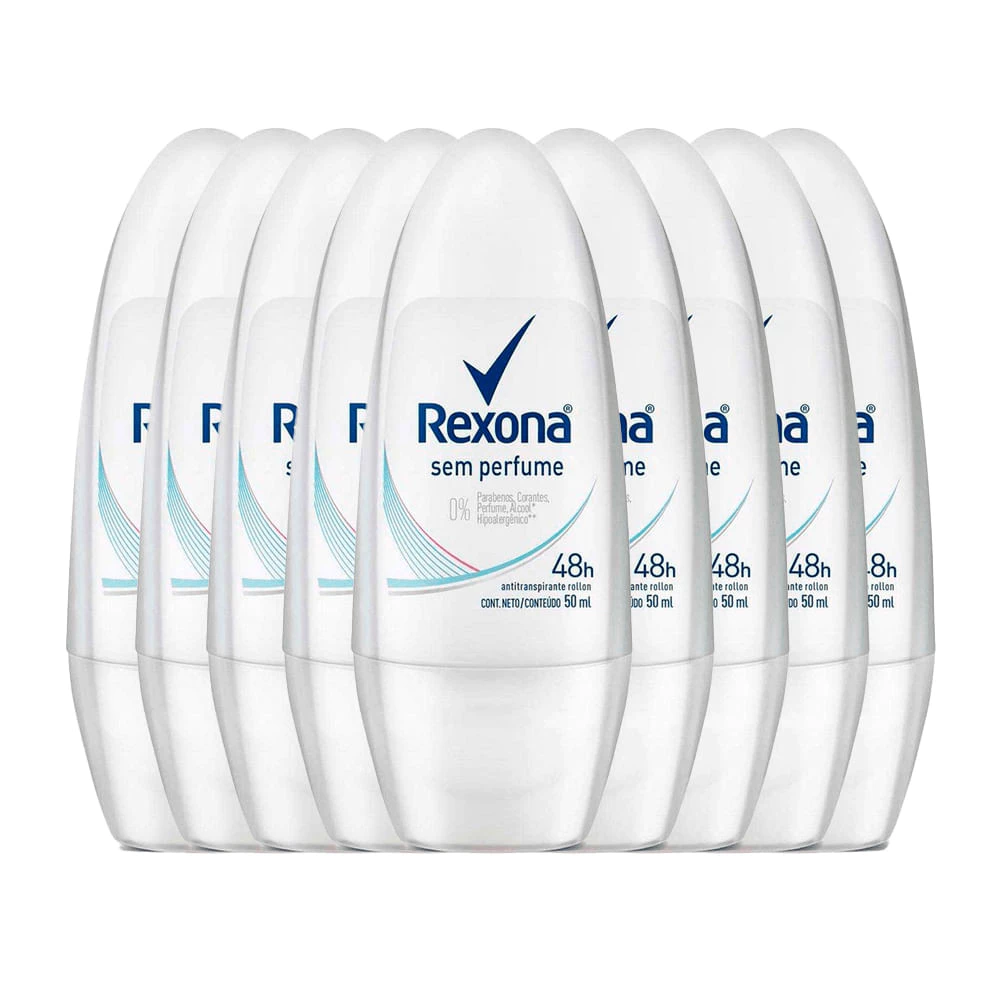 Kit Desodorante Roll On Rexona Sem Perfume 50ml – 9 Unidades