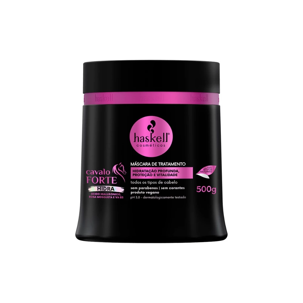 Modo de usar: Após lavar os cabelos, aplique a máscara mecha por mecha, do comprimento às pontas. Massageie e deixe agir de 3 a 5 minutos. Se preferir, faça o uso de touca térmica. Enxágue em seguida, retirando todo o resíduo de creme dos cabelos. Potencialize os resultados utilizando toda a linha Cavalo Forte Hidra.