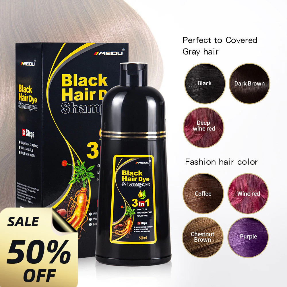 MEIDU Shampoo Tintura de Cabelo Capa Tintura de Cabelo Branco Preto 500ml