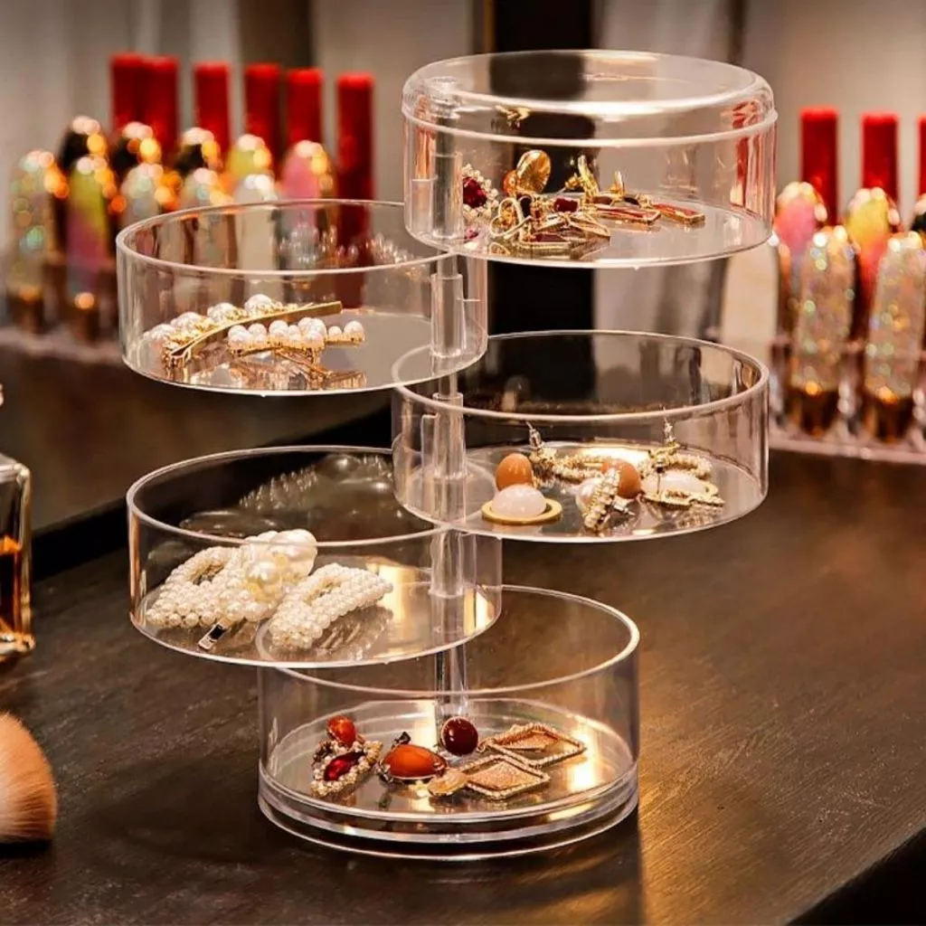 É certo que uma boa organização torna tudo mais prático, e foi pensando nisso que o porta acessórios e cosméticos foi criado. Feito em acrílico, um material muito resistente e leve, como é transparente permite uma ótima visualização do que está dentro. Possui 3 ou 5 divisórias (Escolha no ato da compra), 1 tampa e 1 base com rotação 360°, embeleza e organiza o ambiente, facilitando na hora de se arrumar. 💄💍💅