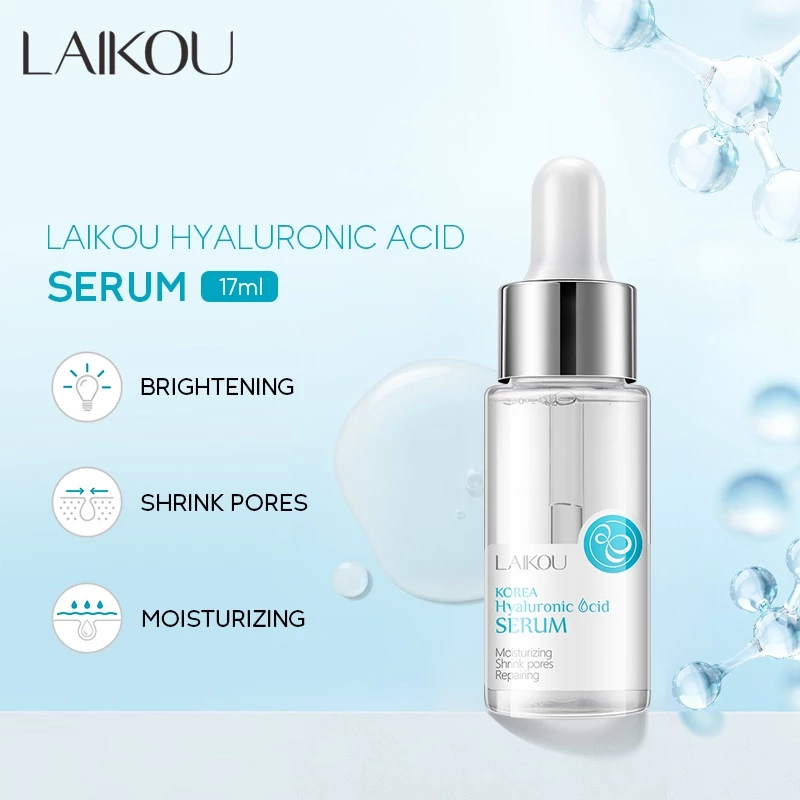 LAIKOU Hyaluronic Acid Face Serum Moisturizing Essence Shrink Pores Reduce Spots Acne For Sensitive Skin Soothing Repairing