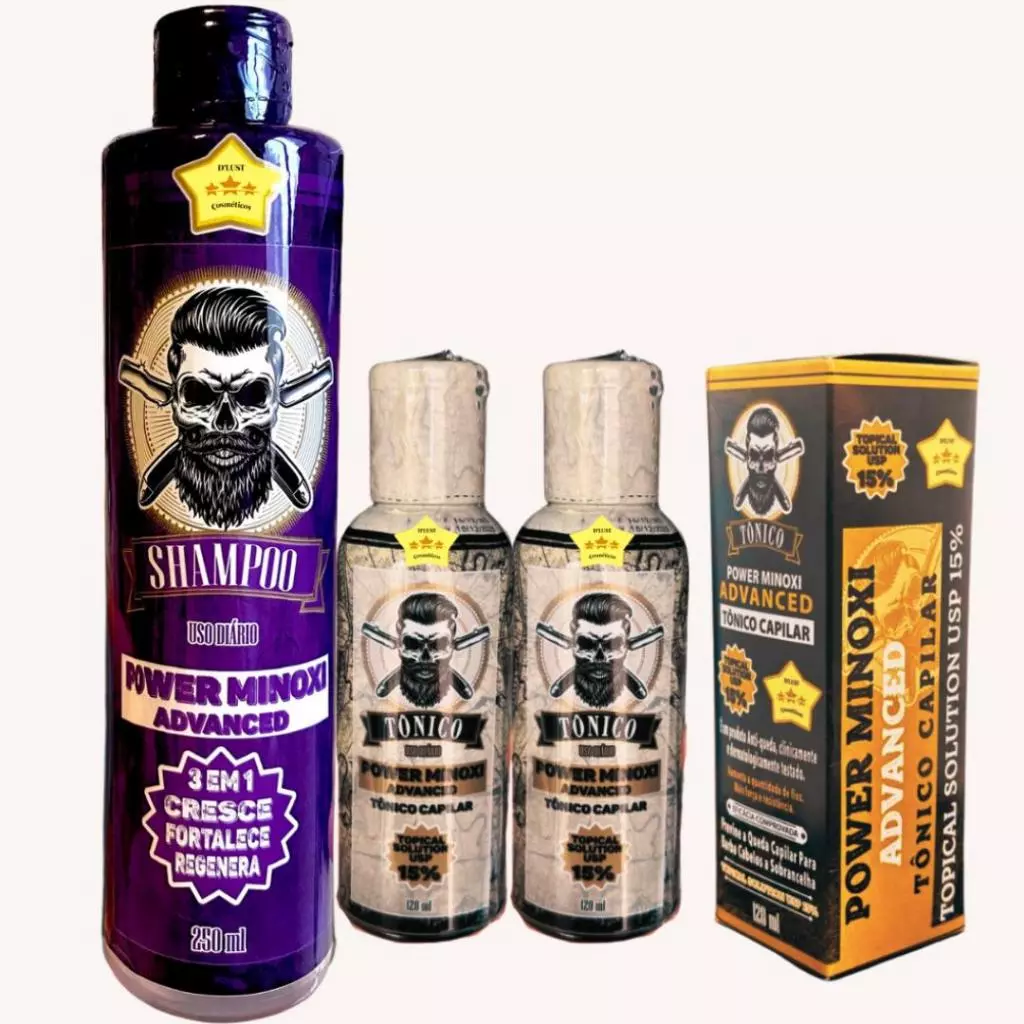 1 shampoo 250ml Cabelo e Barba linha premium D’lust 2 tonicos com caixinhas Powerminox