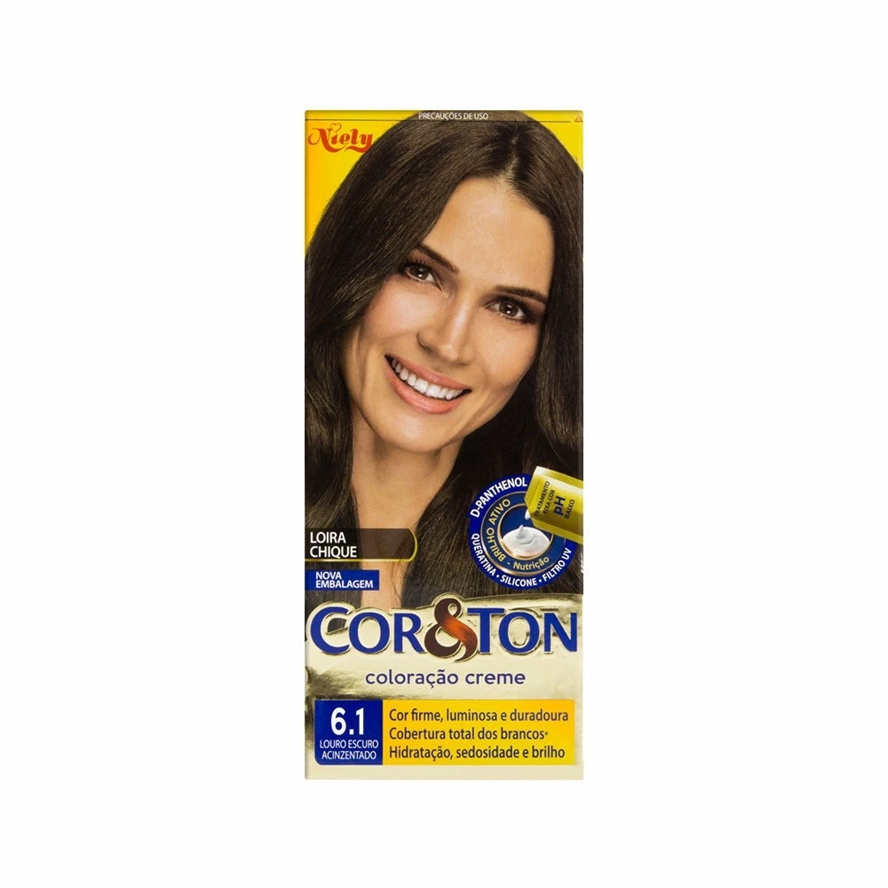 A Tintura Cor & Ton é uma coloração permanente com fórmula de altíssima qualidade, sua textura creme facilita a aplicação e permite melhor absorção dos pigmentos. Realça a cor natural, revela reflexos, clareia ou escurece os cabelos oferecendo cores vivas e luminosas.. Sua fórmula tem a maravilhosa combinação de D-Panthenol, Queratina, Silicone e Filtro UV que garante nutrição para fios fortes, brilho intenso e o aspecto saudável dos fios. Proporciona total cobertura dos cabelos brancos sem ressecar os fios.